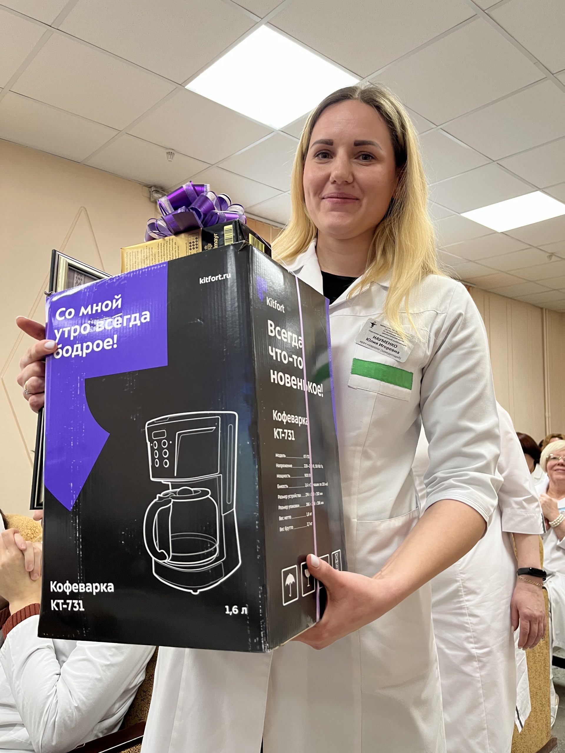 За оказание медицинской помощи высокого качества по результатам подведения итогов деятельности структурных подразделений в 2022 году и в целях поощрения были награждены работники учреждения. Лучшим отделением по итогам 2022 года стало отделение медицинской реабилитации, в подарок, за счет средств профсоюзной организации, отделение получило кофеварку и кофе.